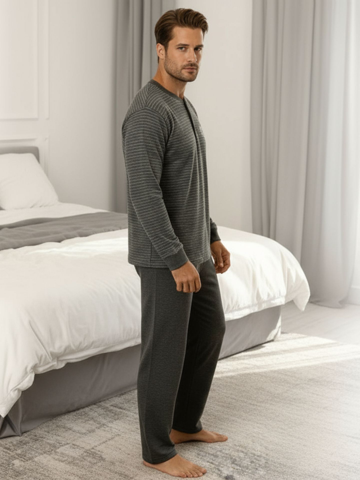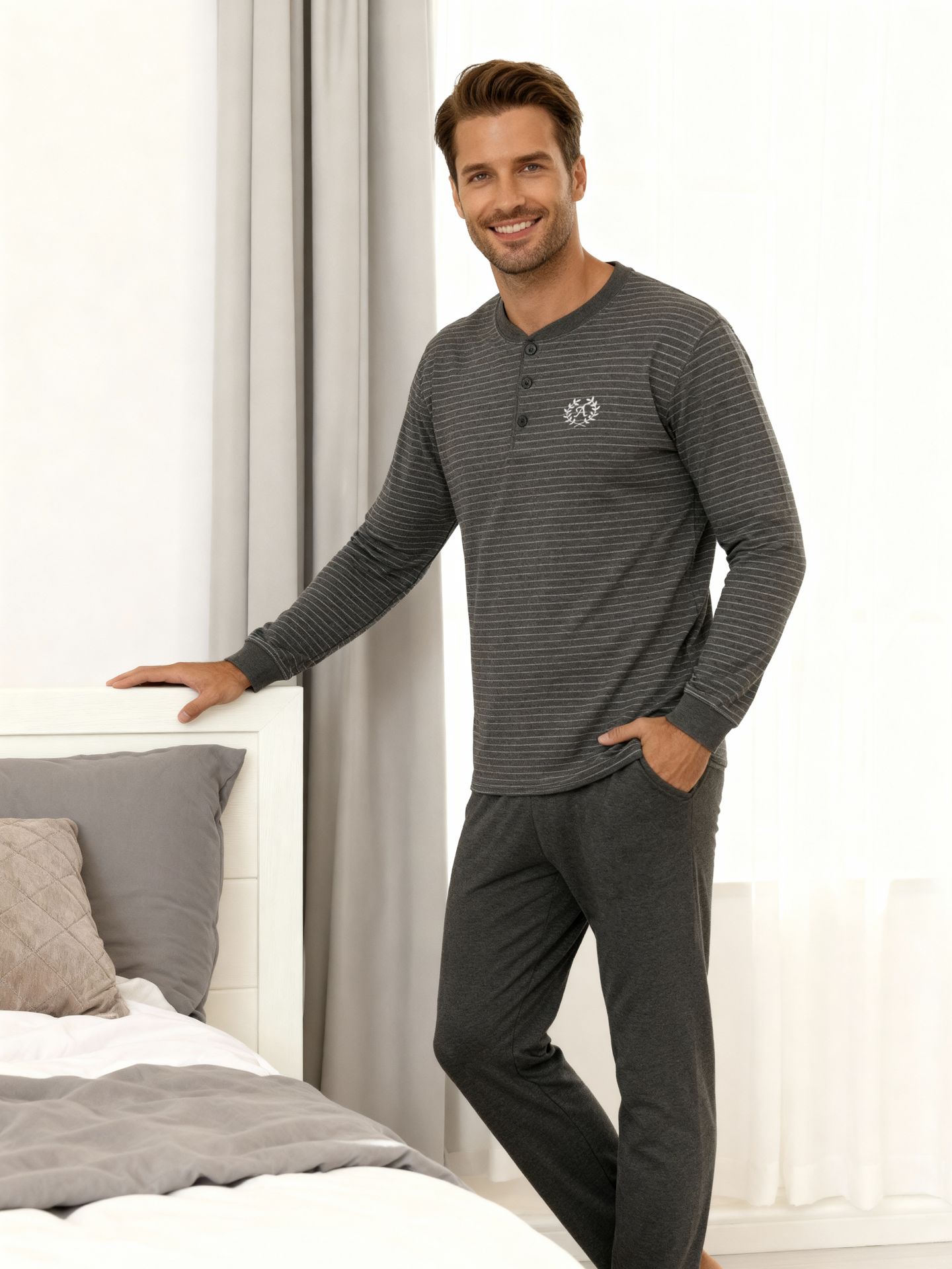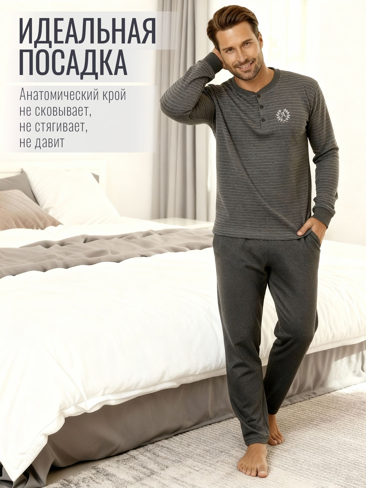 Пижама со штанами с длинным рукавом — идеальный выбор для комфортного сна и уютного домашнего отдыха. Мягкая хлопковая ткань словно фланелевая обеспечивает приятные ощущения на теле, а натуральный хлопок позволяет коже дышать и поддерживает оптимальный микроклимат во время сна. Домашний костюм с лонгсливом пепельного цвета для сна сочетает в себе функциональность и современный стиль, что делает его отличным вариантом для мужчин, подростка или мальчика. В наборе предусмотрена кофта с длинными рукавами и широкими брюками, что гарантирует свободу движений и удобство в любое время суток. Эстетичная и аккуратная отделка подчеркивает красивый внешний вид комплекта, а приятные к телу материалы делают каждую ночь особенно комфортной. Пижамы представлены в четырех размерах — от маленького до большого, благодаря чему вы легко сможете подобрать подходящий вариант как для взрослых, так и для подростка. Мягкая хб ткань подходит для чувствительной кожи и не вызывает раздражений, а натуральный хлопок сохраняет свою форму даже после многократных стирок. Брюки однотонного благородного цвета антрацит с длинными штанинами обеспечивают тепло в прохладное время года, а футболка с длинными рукавами защищает от переохлаждения. Это отличный выбор для семейной одежды дома — эстетичный комплект станет частью семейного гардероба благодаря универсальному дизайну. Для любителей классики предусмотрена рубашка с длинными рукавами и удобные штаны на резинке. Такой pijama набор идеально подходит для спокойного сна и расслабленного отдыха после насыщенного дня. Милая пижамка отличается лаконичным дизайном и практичностью: широкий крой брюк позволяет свободно двигаться, а эластичная резинка фиксирует одежду на талии без стеснения движений дома или в поездках. Мужская пижама ТМ Алимер выполнена из 100% хлопка высшего качества, что гарантирует гипоаллергенность и долговечность изделия. Очень достойный новогодний подарок - встречаем Новый 2026 в объятиях новинки этого года.