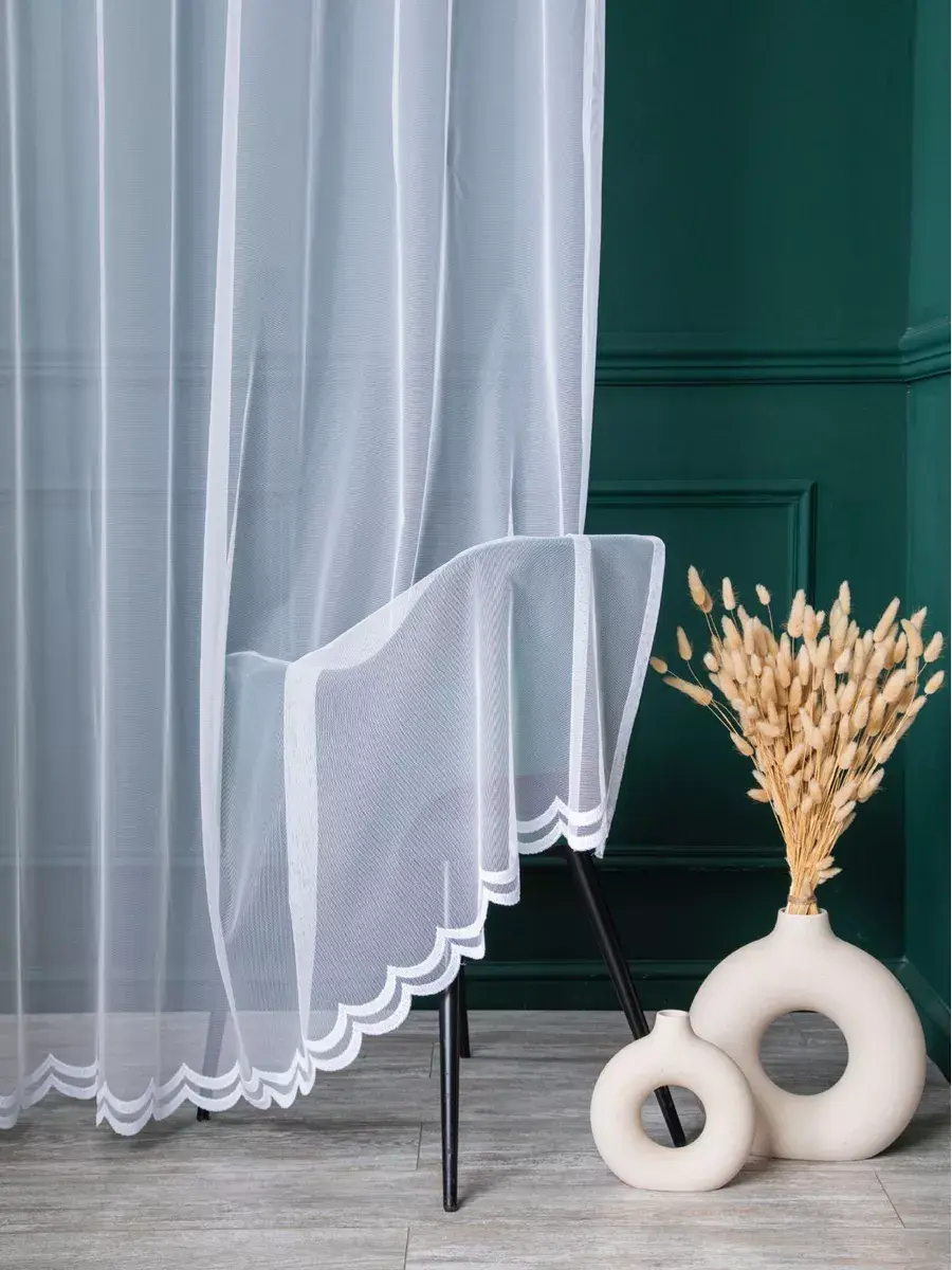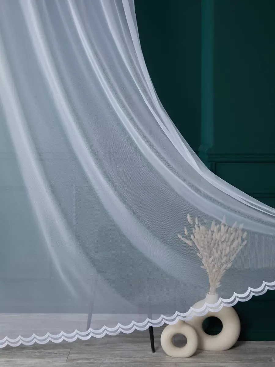 Изысканный элемент дизайна, который преобразит любое помещение - однотонный тюль на основе мелкой грек сетки с декорированной каймой. Легкая занавеска из качественной турецкой ткани сахарной белизны (без синего оттенка) отличается однородным окрасом по всему полотну, не деформируется при растяжении, без зацепок при неосторожном обращении, выглядит воздушно, дорого и нежно. Как вуаль пропускает и мягко рассеивает солнечный свет, освежает комнату - делает ее просторнее и светлее.