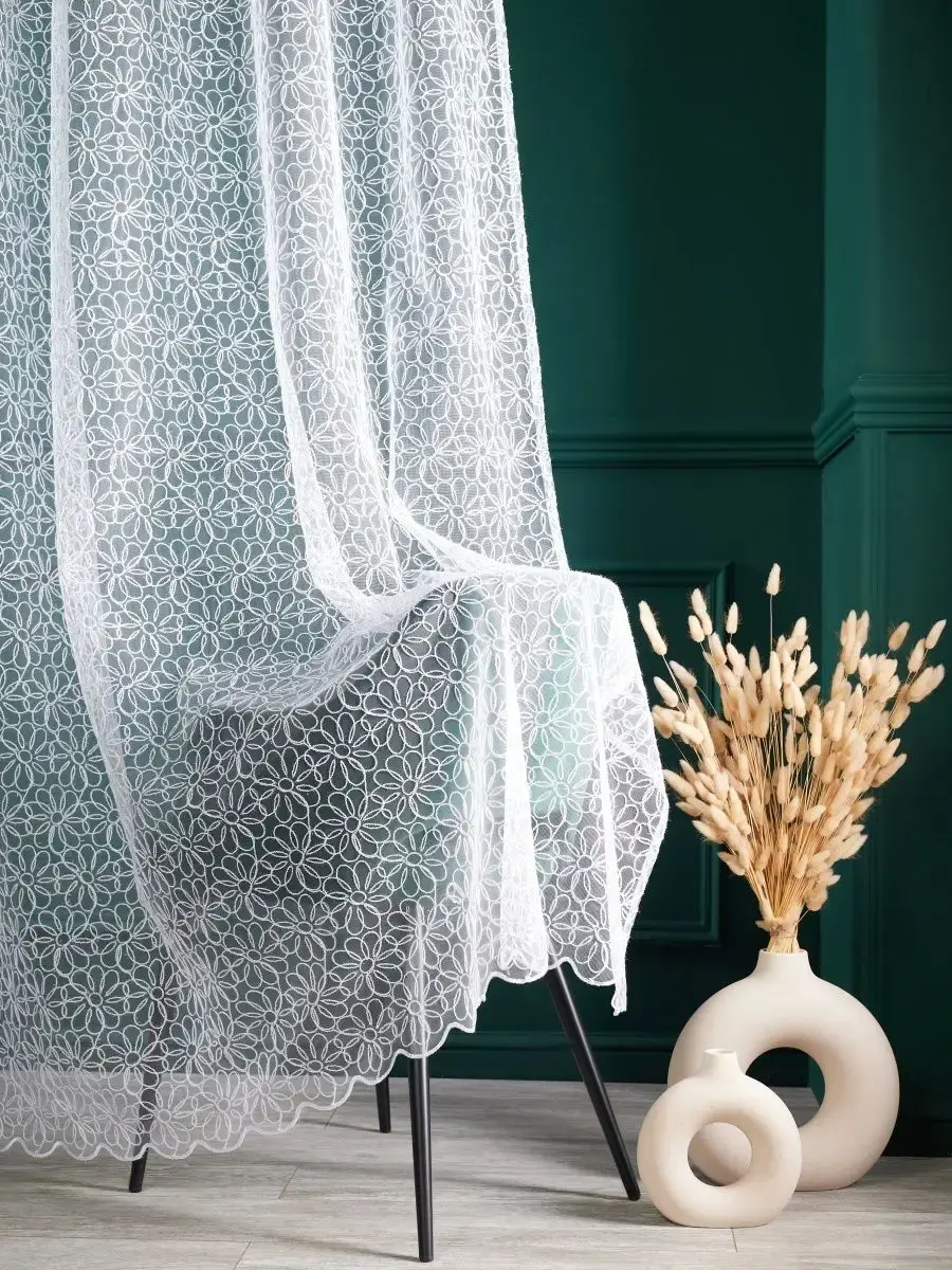 Шикарный стильный тюль с узором Ромашки идеально преобразит современный дизайн интерьера. Готовая длинная занавеска размер полотна 250х300 см (высота 250см, ширина 300см) смотрится нарядно и создает уютную атмосферу в доме и на даче: гостиной или зале, спальне и кухне, детской комнате девочки или мальчика и даже на балконе. Также вы можете сделать детский балдахин. Подойдет для украшения и декораций любых мероприятий – свадеб, школ, в класс и детских садов. Тюль вуаль изготовлен из высококачественной люксовой турецкой ткани сахарной белизны (şeker beyazı). Рисунок на сетке вышит кордовой нитью с люрексом, из-за чего занавеска воспринимается объемной и роскошной. Швы абсолютно ровные, а изделие не имеет никаких затяжек. Присборенные полупрозрачные тюли празднично и красиво смотрятся как с простой однотонной шторой, так и с цветными занавесками. Крепление вуали возможно широкой прозрачной шторной лентой 6 см с двумя рядами петель на крючки, кольца, или надевается на трубу. Для легкой драпировки предусмотрены четыре направляющие шнура. Комнатный тюль можно стирать в деликатном режиме при температуре 30 градусов без отжима и отбеливания. Гладить штору не обязательно – ее можно повесить на карниз все складки и заломы расправятся самостоятельно под тяжестью изделия. Yulata производит непревзойденный тюль для вашего дома! Это доказывают восторженные отзывы наших покупателей. Актуальная и модная новинка 2024 года продается с большой скидкой по акции для продвижения нового бренда. Приятных покупок!