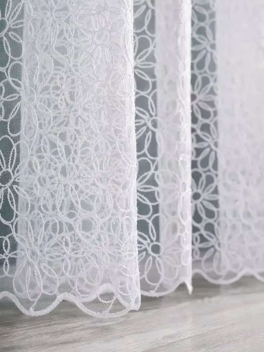 Шикарный стильный тюль с узором Ромашки идеально преобразит современный дизайн интерьера. Готовая длинная занавеска размер полотна 250х600 см (высота 250см, ширина 600см) смотрится нарядно и создает уютную атмосферу в доме и на даче: гостиной или зале, спальне и кухне, детской комнате девочки или мальчика и даже на балконе. Также вы можете сделать детский балдахин. Подойдет для украшения и декораций любых мероприятий – свадеб, школ, в класс и детских садов. Тюль вуаль изготовлен из высококачественной люксовой турецкой ткани сахарной белизны (şeker beyazı). Рисунок на сетке вышит кордовой нитью с люрексом, из-за чего занавеска воспринимается объемной и роскошной. Швы абсолютно ровные, а изделие не имеет никаких затяжек. Присборенные полупрозрачные тюли празднично и красиво смотрятся как с простой однотонной шторой, так и с цветными занавесками. Крепление вуали возможно широкой прозрачной шторной лентой 6 см с двумя рядами петель на крючки, кольца, или надевается на трубу. Для легкой драпировки предусмотрены четыре направляющие шнура. Комнатный тюль можно стирать в деликатном режиме при температуре 30 градусов без отжима и отбеливания. Гладить штору не обязательно – ее можно повесить на карниз все складки и заломы расправятся самостоятельно под тяжестью изделия. Yulata производит непревзойденный тюль для вашего дома! Это доказывают восторженные отзывы наших покупателей. Актуальная и модная новинка 2024 года продается с большой скидкой по акции для продвижения нового бренда. Приятных покупок!